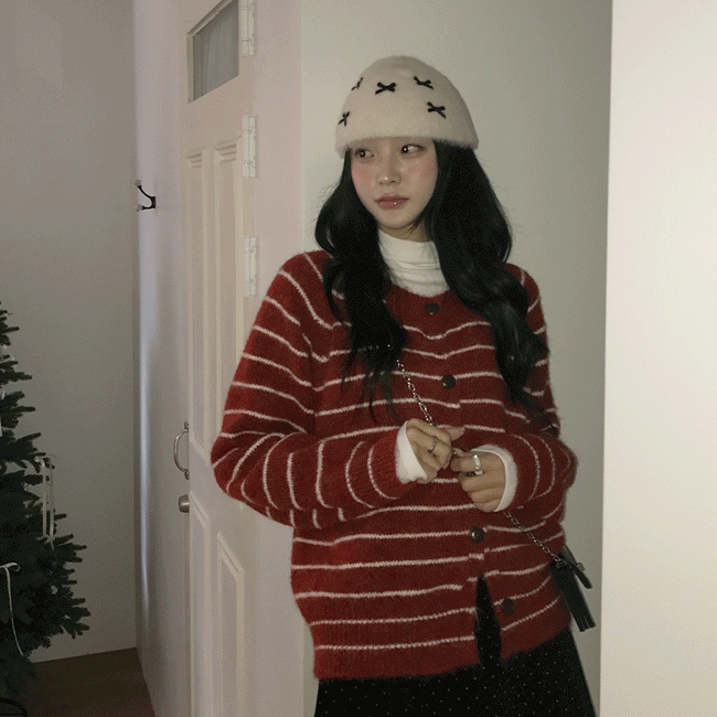 [스트라이프/폭닥🐰] 울헤어리단가라V넥니트티