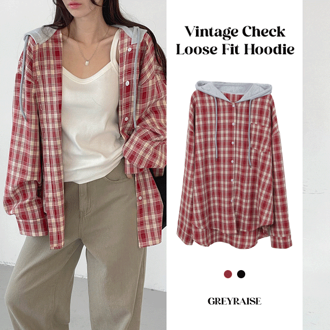 [간절기템/너드룩👓] 빈티지체크루즈핏후드셔츠 (2color)