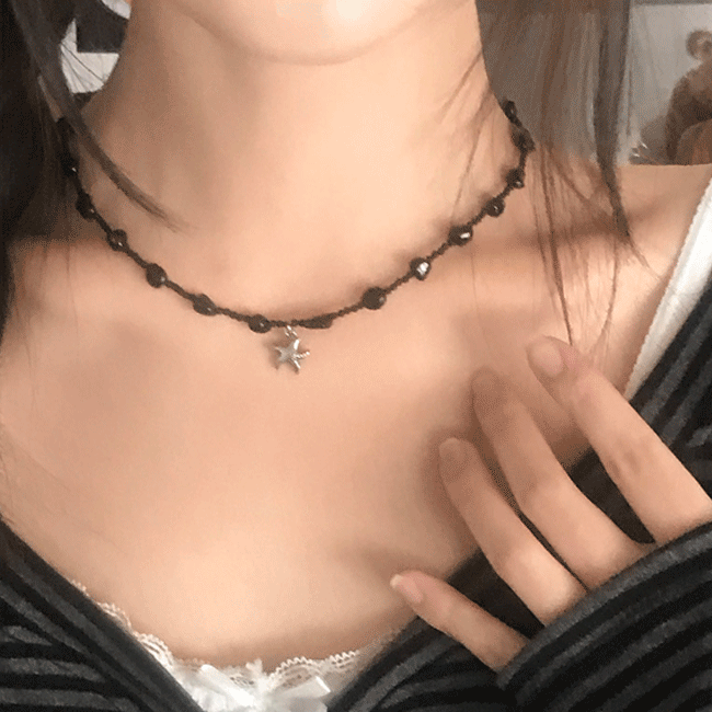 [코디추천🖤/포인트] 오닉스불가사리비즈네크리스