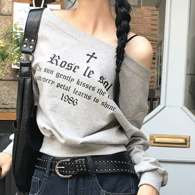 [말라핏/여리여리🤍] 로즈영문오프숄더맨투맨티 (3color)