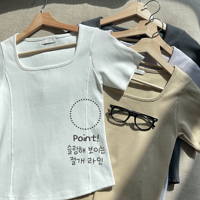 [여리핏💕/편안한착용감] 스퀘어넥절개골지반팔티 (4color)