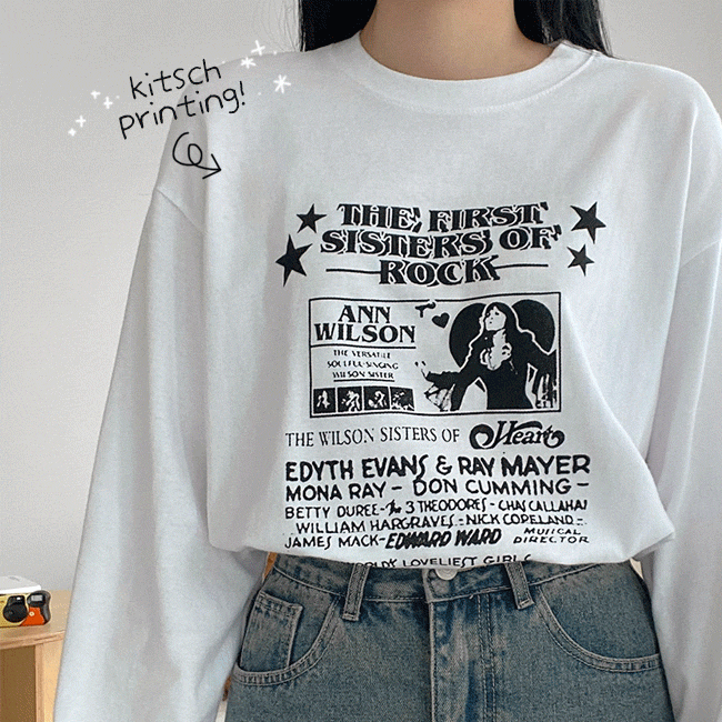 [롱슬리브/피치기모] 키치영문프린팅루즈긴팔티 (2color)