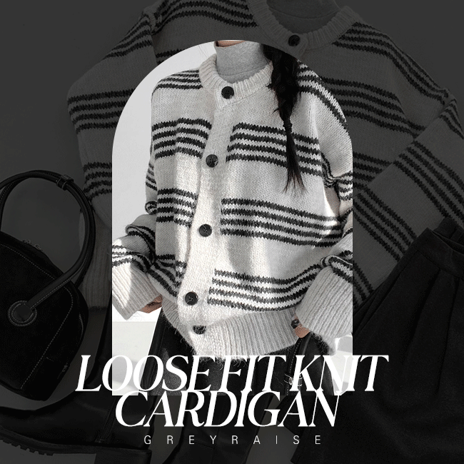 [꾸안꾸/스트라이프] 줄지배색루즈핏니트가디건