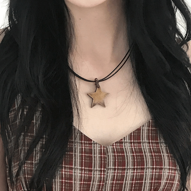[빈티지🧸/길이조절] 우드별더블스트랩네크리스
