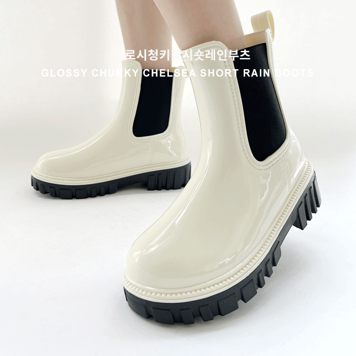 [4cm/장마룩☔] 글로시청키첼시숏레인부츠 (2color)