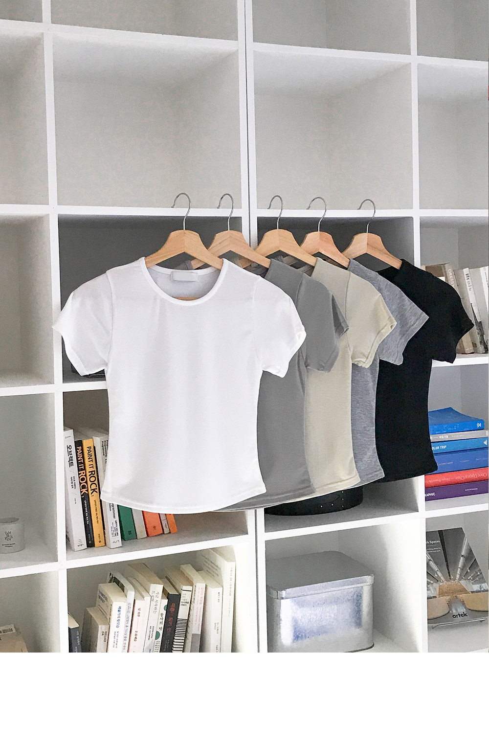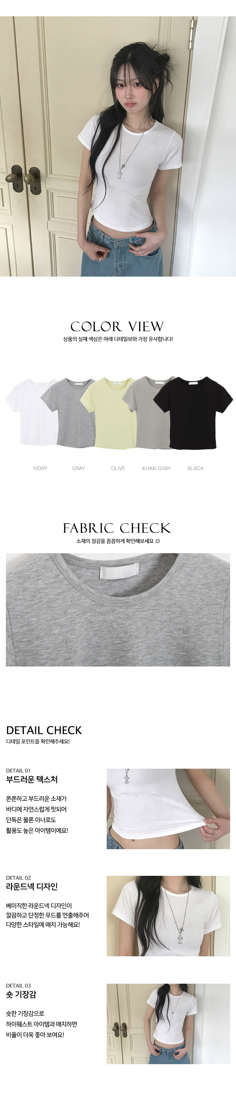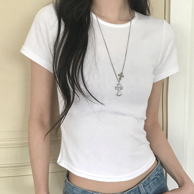 [기본이너티🤍/쫀쫀] 베이직슬림R넥크롭반팔티 (5color)
