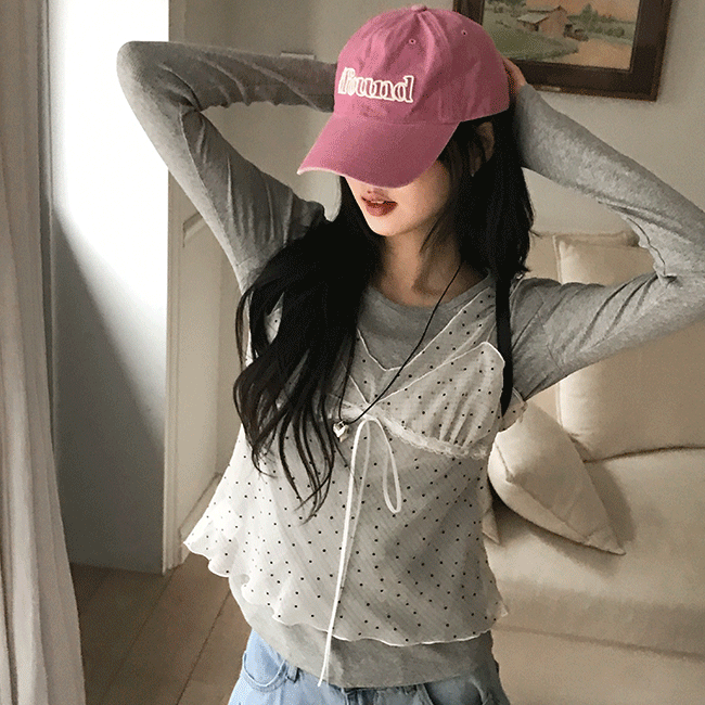 [땡땡이🖤/타이] 포근피치도트리본긴팔티