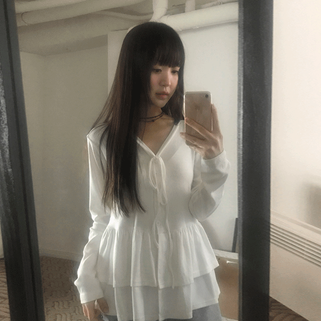 [봄데일리💌/롱슬리브] 캉캉리본여리플레어긴팔티 (2color)