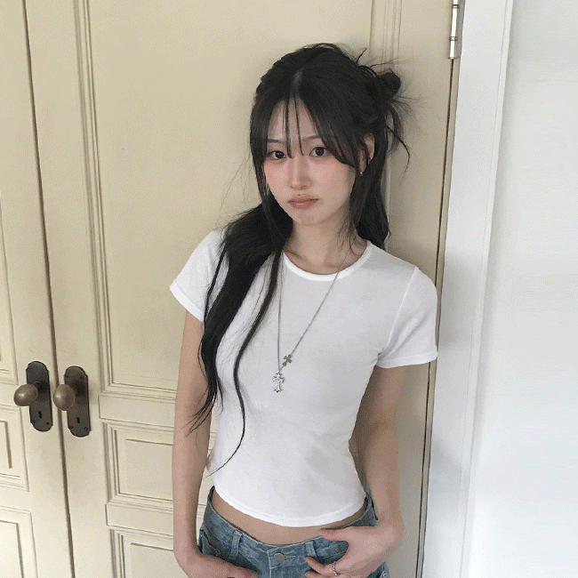 [기본이너티🤍/쫀쫀] 베이직슬림R넥크롭반팔티 (5color)