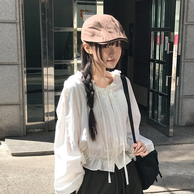[부드러운원단💭/빈티지] 프릴레이스버튼후드블라우스