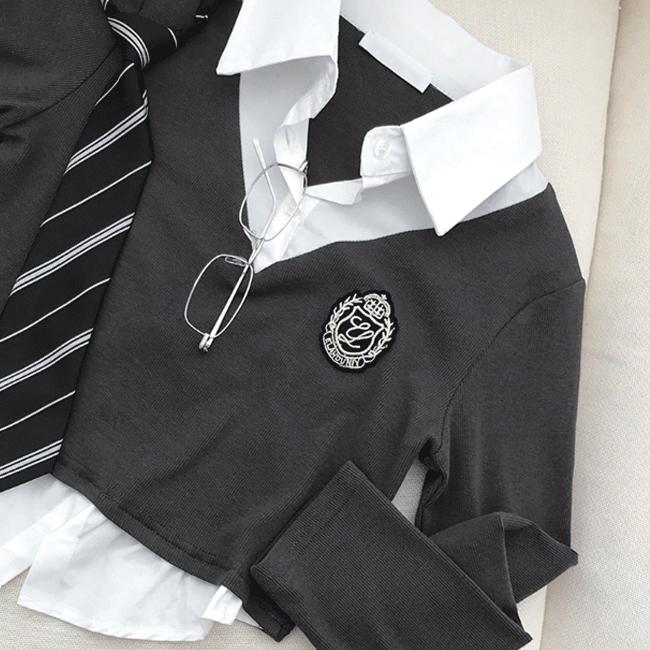 [넥타이세트🖤/일체형] 프레피크롭타이셔츠set (2color)