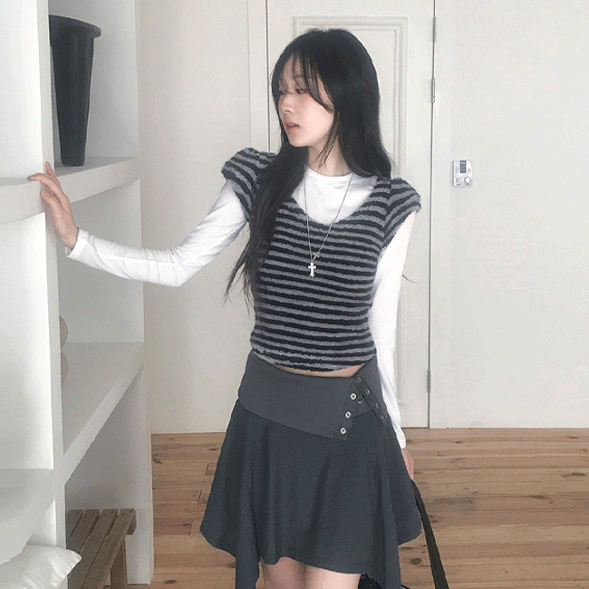 [여리슬림핏🩰/스트라이프] 단가라배색슬릿V넥니트티 (4color)