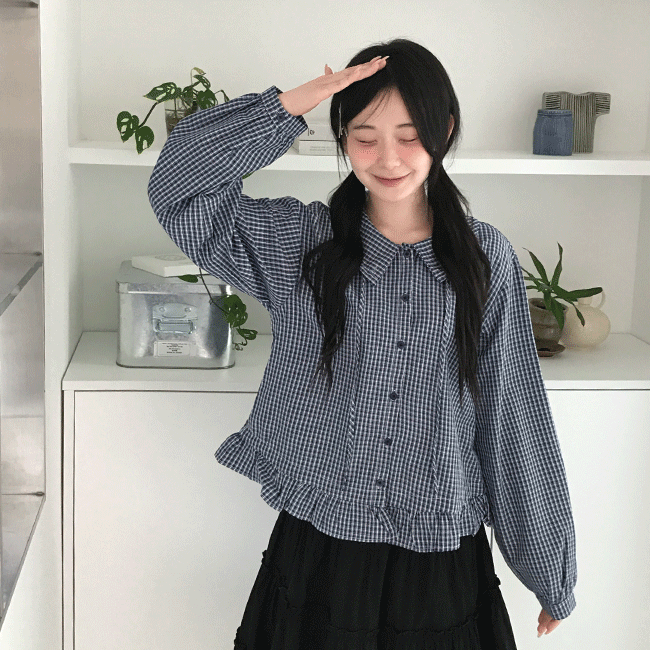 [러블리/아방핏🤍] 빈티지체크프릴카라블라우스 (2color)