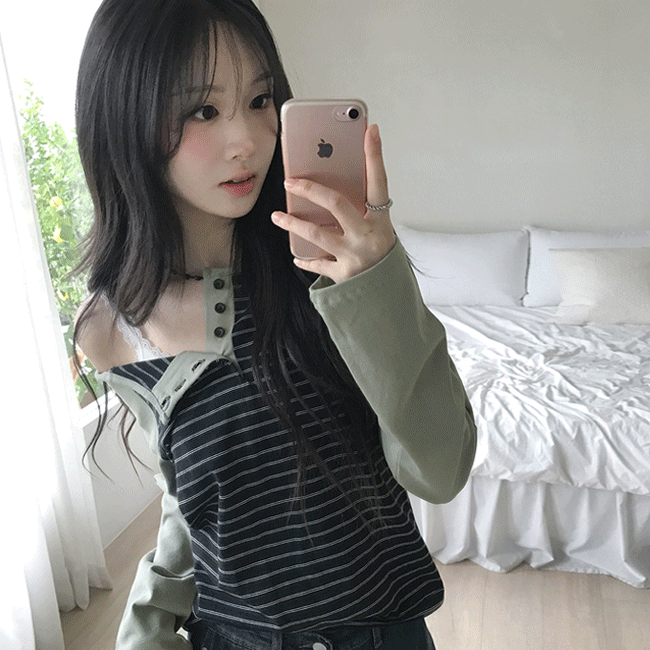 [잘록핏🖤/롱슬리브] 슬림셔링소매버튼긴팔티 (7color)