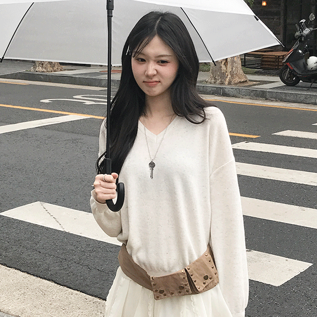 [딸기우유🍓🥛/말라핏!] 팬던트양V골지슬림니트티 (4color)