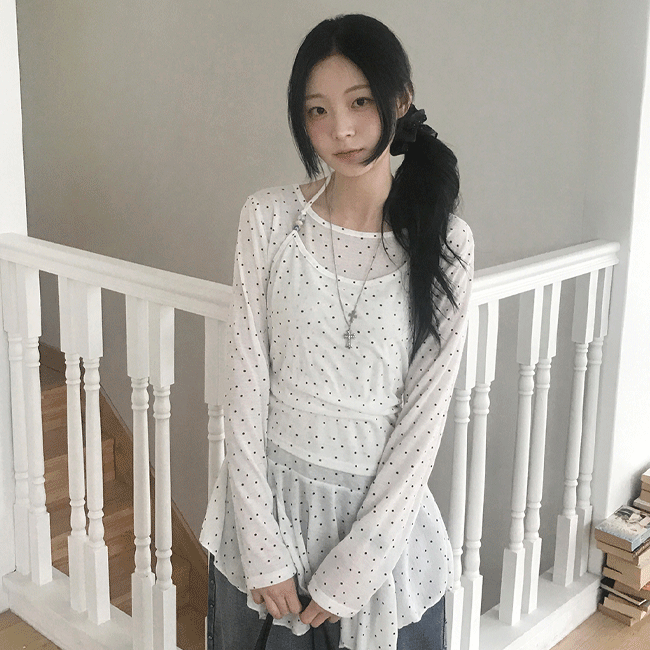 [일체형/시스루🤍] 도트쉬폰홀터레이어드반팔티 (2color)