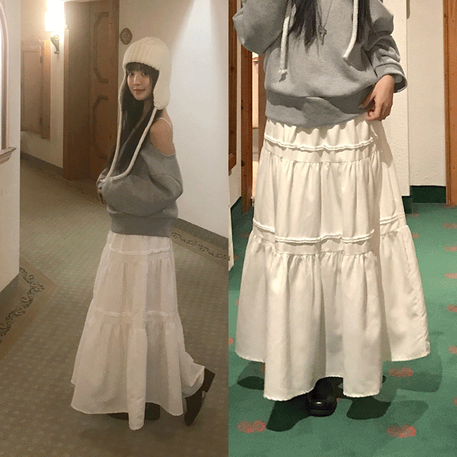 [안감o/러블리💌] 스웨이드프릴밴딩롱스커트 (3color)