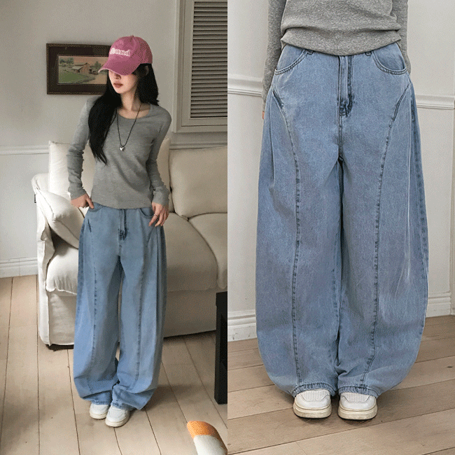 [숏,기본,롱/모델극찬/핏보장🖤] 절개올밴딩와이드데님팬츠 (4color)