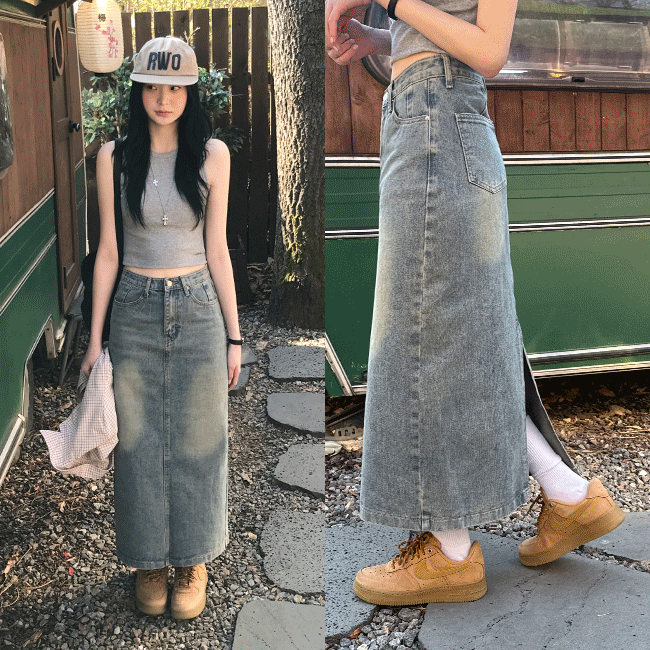 [S~2XL/청치마] 빈티지워싱데님롱스커트 (2color)