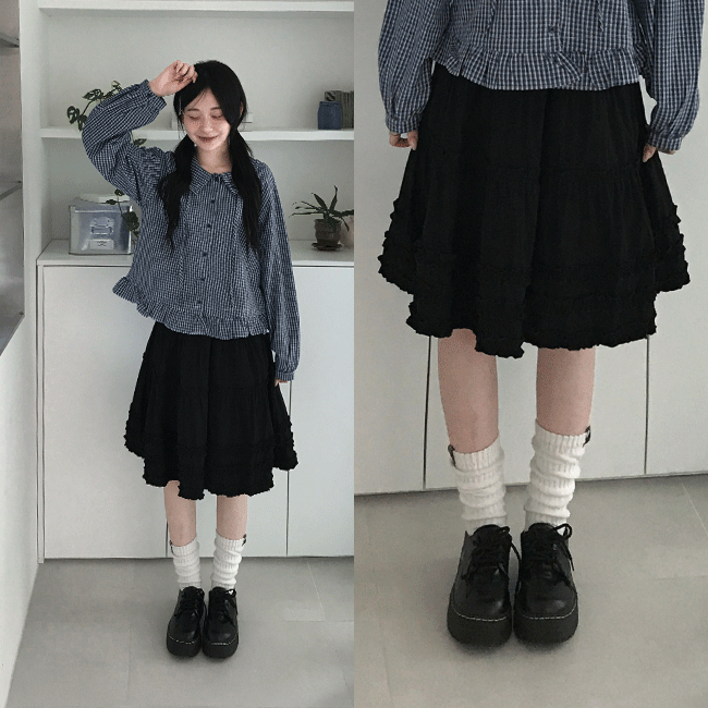 [여리여리/안감o] 도트프릴밴딩미디스커트 (2color)
