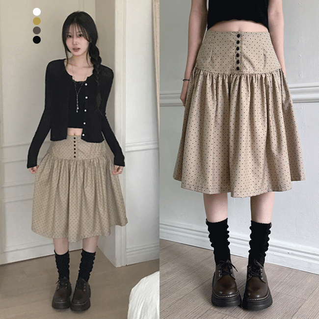 [실키/빈티지📷] 도트프릴여리밴딩미디스커트 (2color)