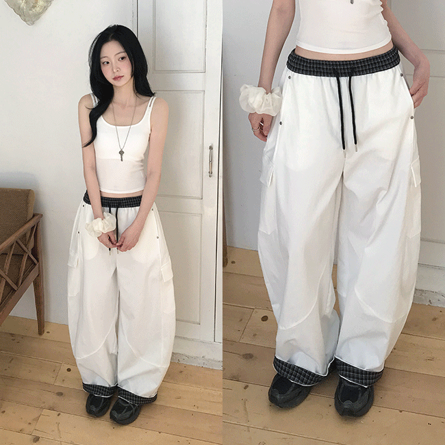[여름까지🌳/밑단포인트!] 롤업카고뒷밴딩와이드팬츠 (2color)