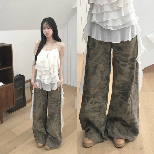 [일체형🖤/바스락] 와샤스터드레이어드밴딩팬츠 (3color)