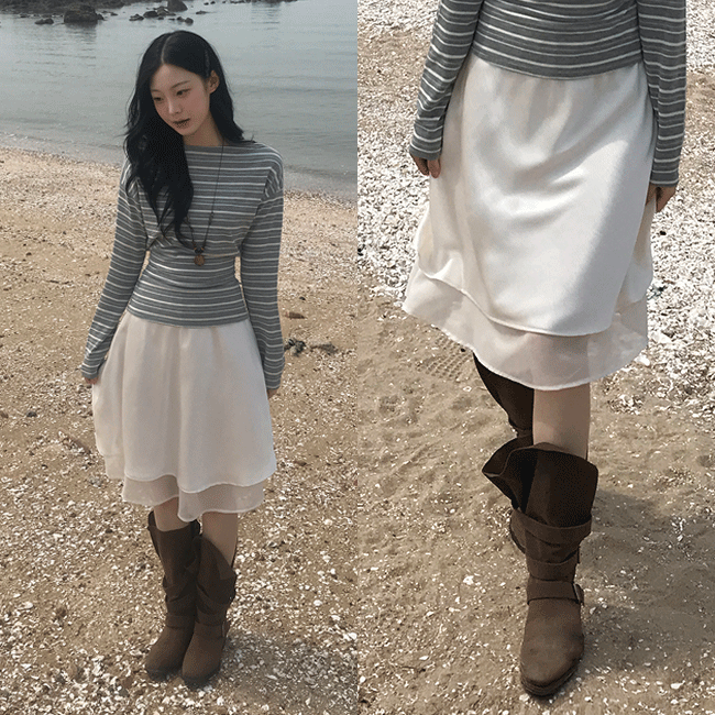 [벨트세트/코디추천🐰] 오프숄더언발레이어드원피스 (2color)