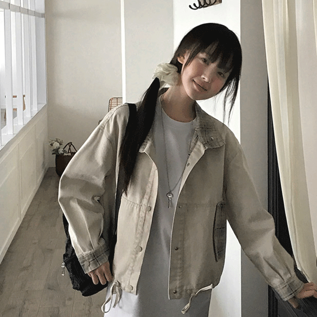 [봄아우터🌱/빈티지] 코튼체크배색스트링숏점퍼 (2color)