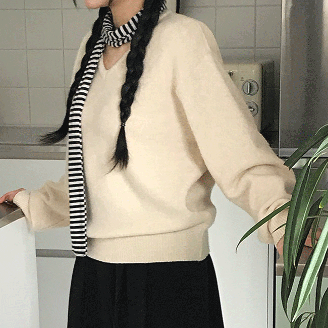 [스트라이프/폭닥🐰] 울헤어리단가라V넥니트티