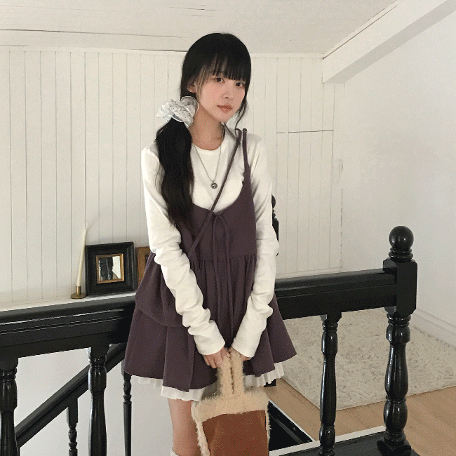 [투피스/여리슬림핏🍥] 매쉬시스루레이어드긴팔티 (2color)