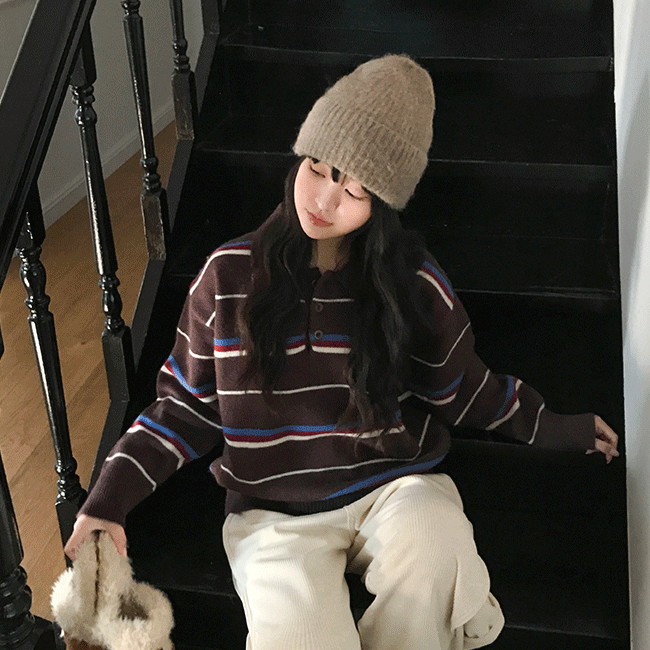 [고퀄☁/스트라이프] 단가라배색루즈카라니트티 (3color)