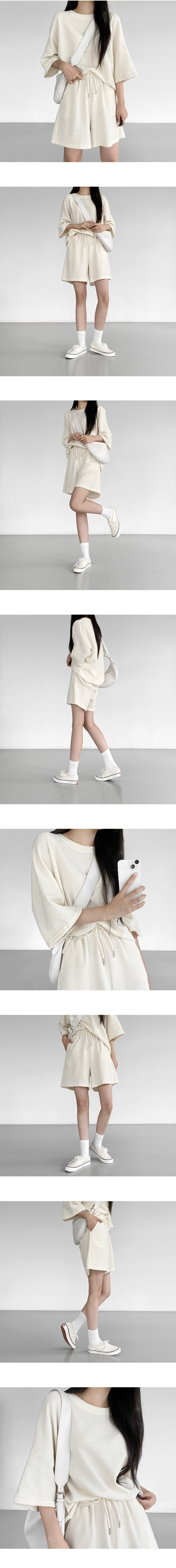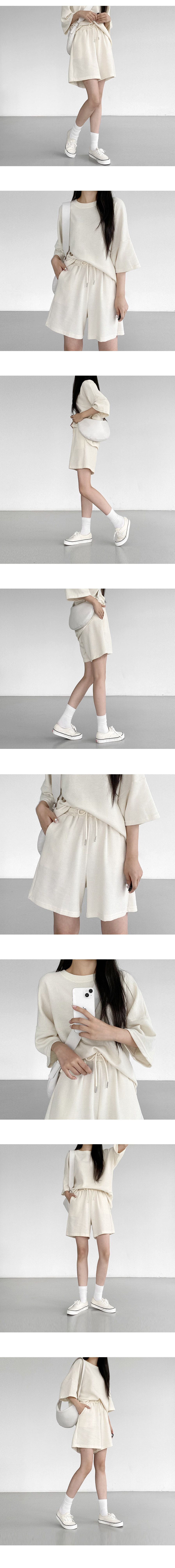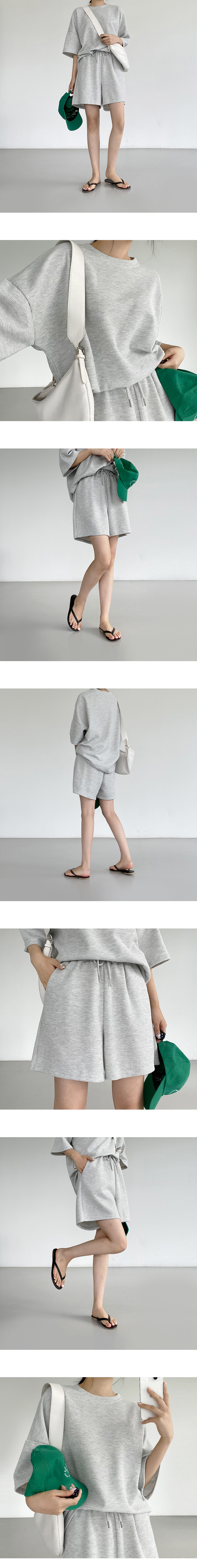 [세트가격!/반팔티+반바지] 와플트레이닝쇼츠set (2color)