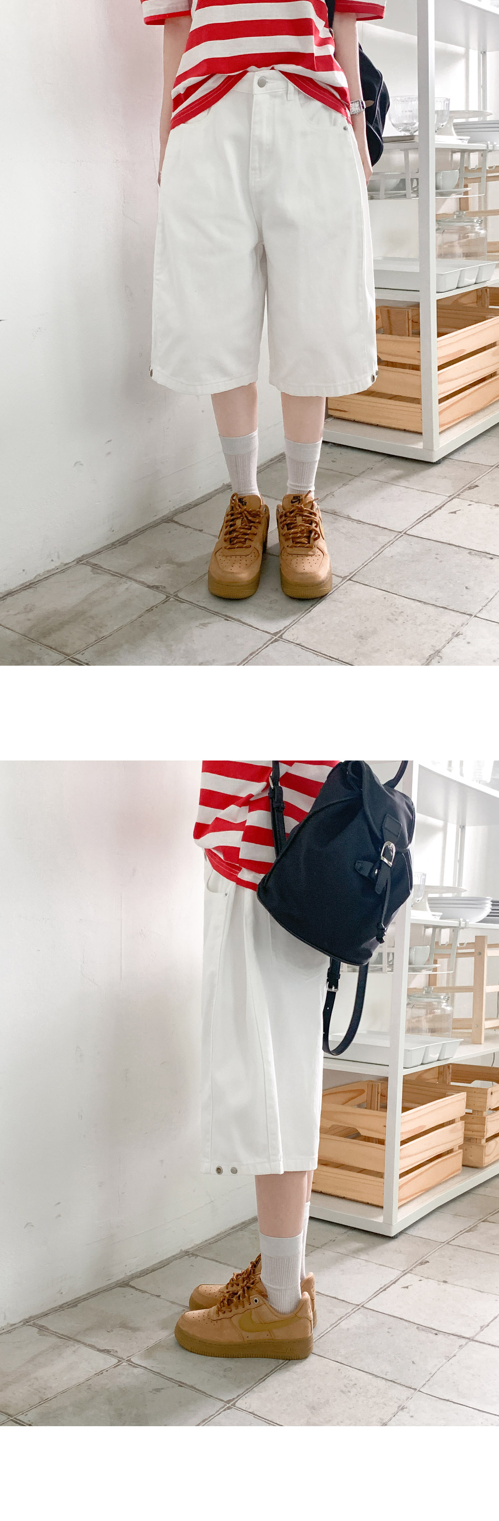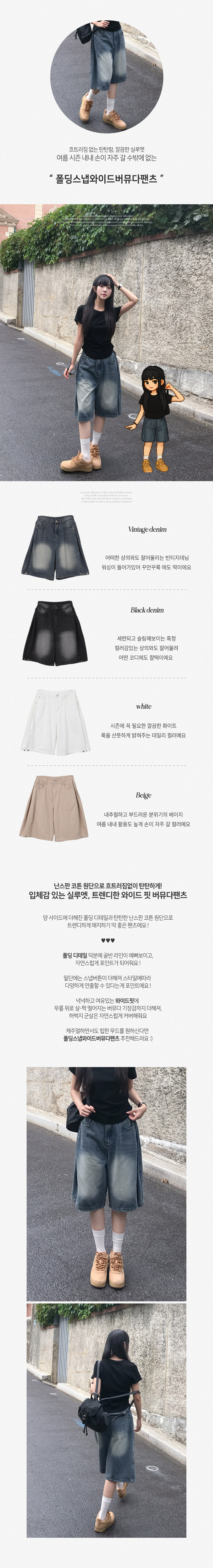[~2XL까지/밑단버튼] 폴딩스냅와이드버뮤다팬츠 (4color)