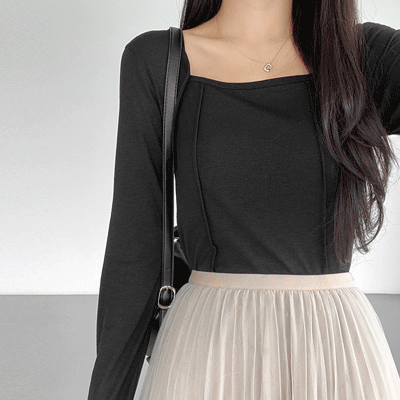 [긴팔/날씬핏] 핀턱스퀘어넥슬림크롭티 (4color)
