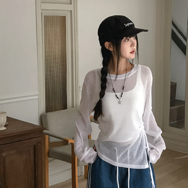 [투피스/여리슬림핏🍥] 매쉬시스루레이어드긴팔티 (2color)