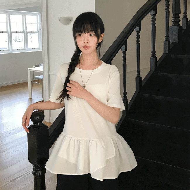 [러블리🤍/사계절] 레이어드프릴플레어반팔티 (2color)