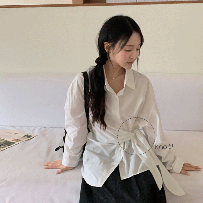 [허리잘록핏🤍/하객룩] 언발사이드매듭루즈핏셔츠 (2color)