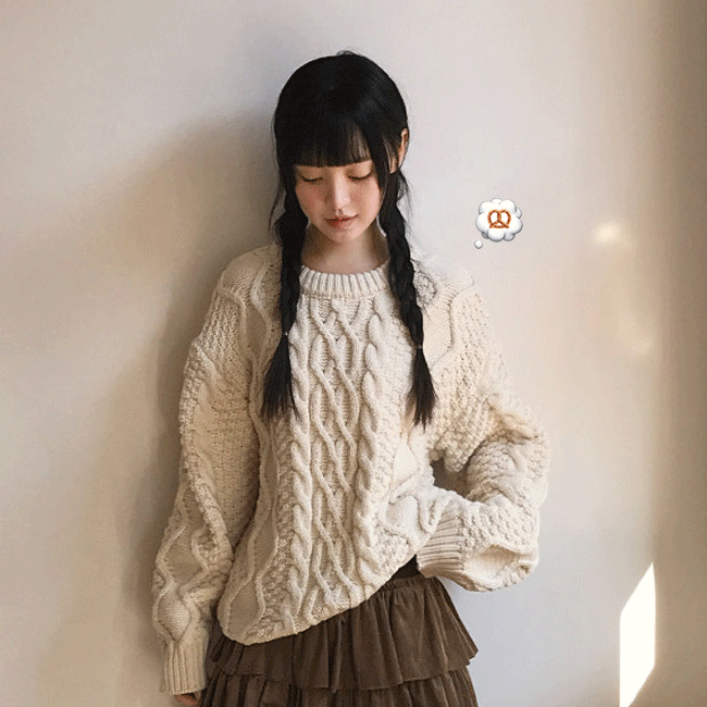 [꽈배기🥨/청순] 도톰케이블짜임라운드니트티 (2color)