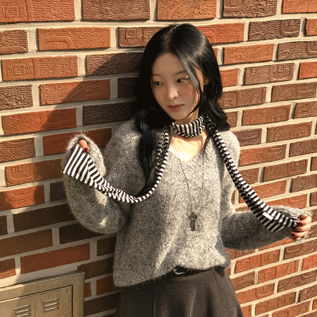 [스트라이프/폭닥🐰] 울헤어리단가라V넥니트티