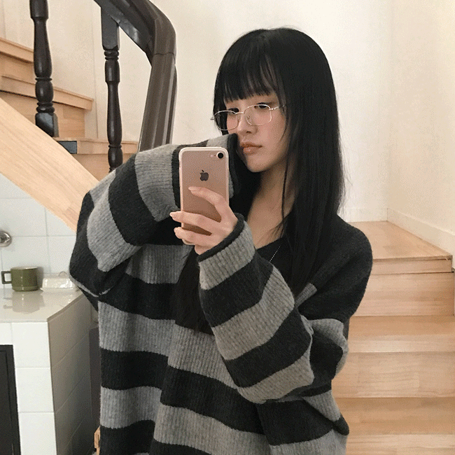 [고퀄☁/스트라이프] 단가라배색루즈카라니트티 (3color)