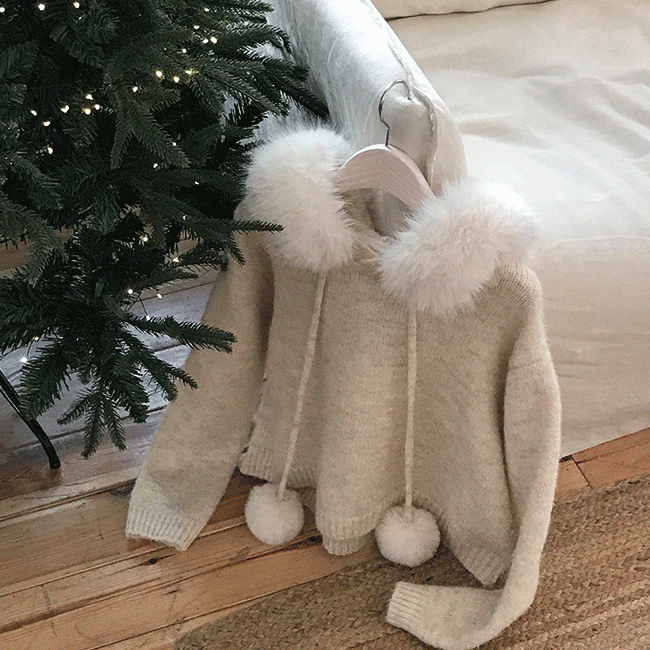 [퍼탈부착o/러블리🤍] 폼폼방울퍼후드크롭니트티