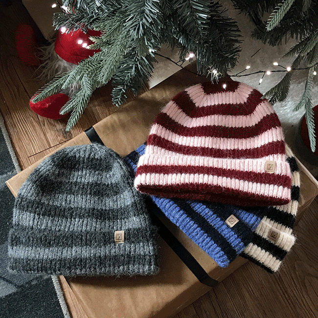 [스트라이프/폭닥💭] 울헤어리ST패치니트비니 (4color)