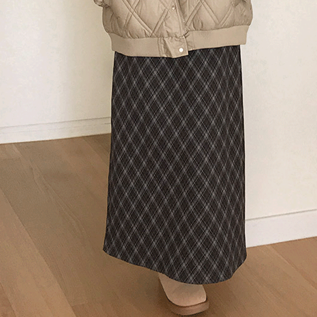 [겨울치마❄/H라인] 포근기모체크뒷밴딩롱스커트