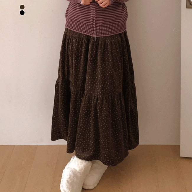 [겨울치마❄/안감o] 잔꽃기모올밴딩롱스커트 (2color)