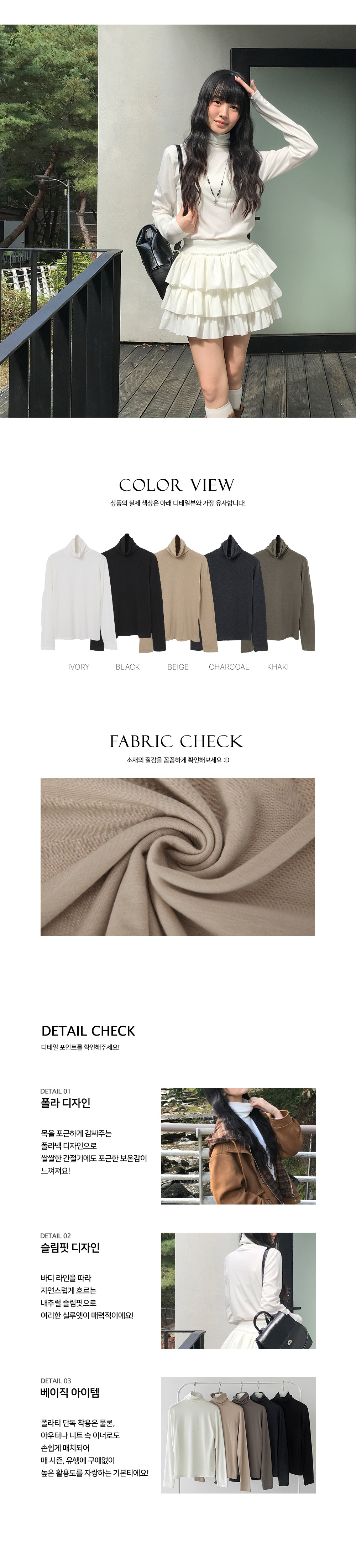 *2개구매할인* [MADE/후기극찬🏆/~4XL] 피치기모슬림스판폴라티 (5color)