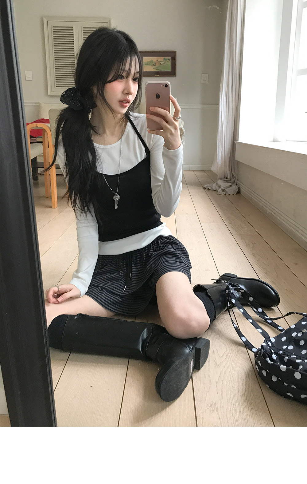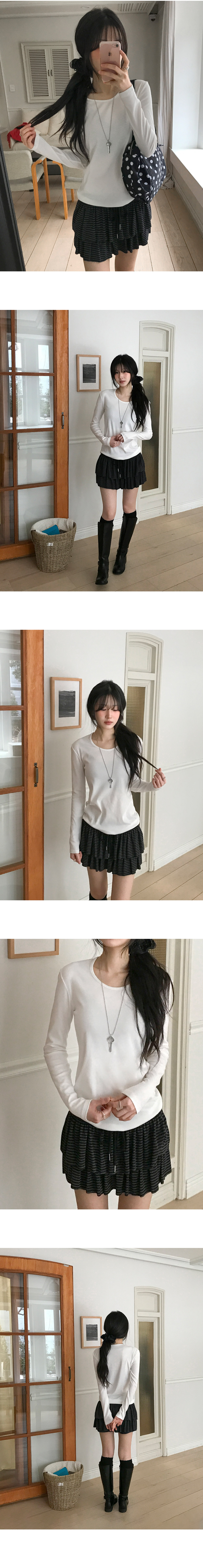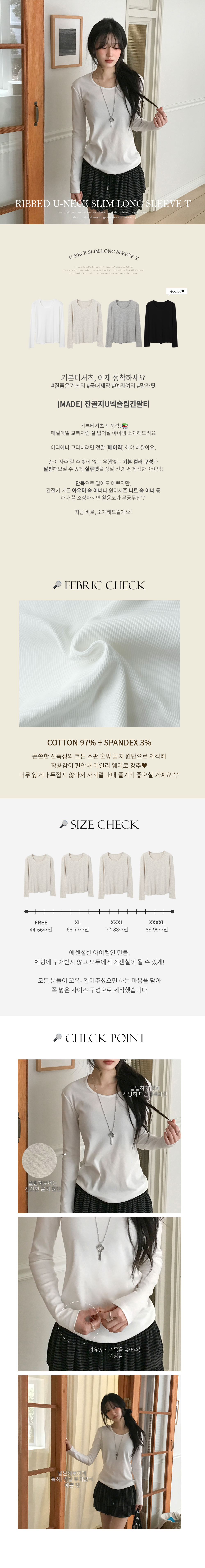 [MADE/퀄리티보장✨/손등덮는] 잔골지U넥슬림긴팔티 (4color)