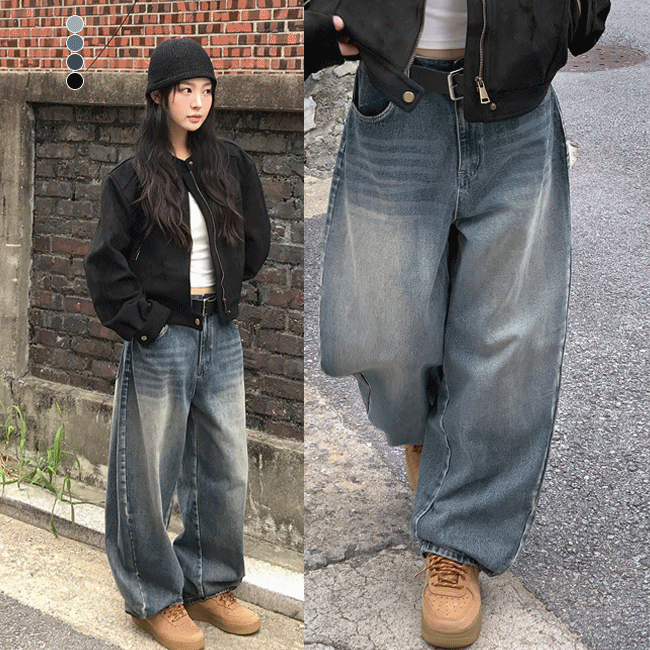 [숏,기본,롱/벌룬핏💙] 커브뒷밴딩와이드데님팬츠 (3color)