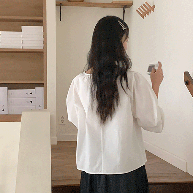 [백버튼/팔뚝널널👍🏻] 코튼퍼프셔링루즈블라우스