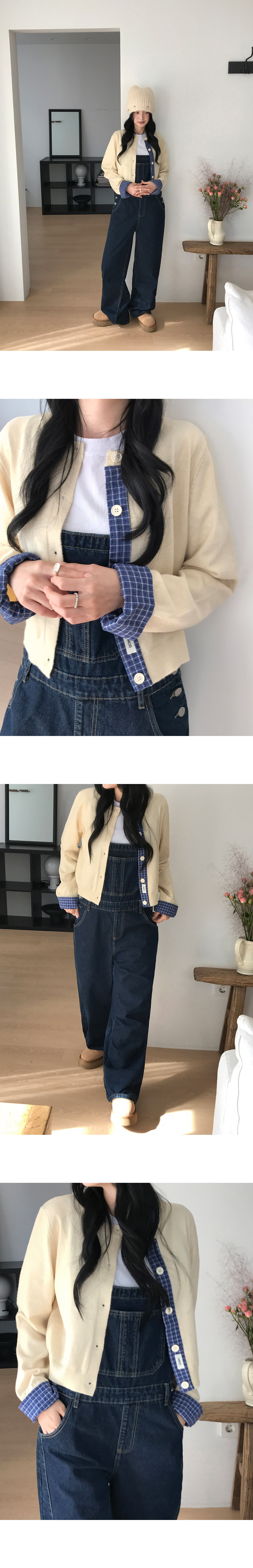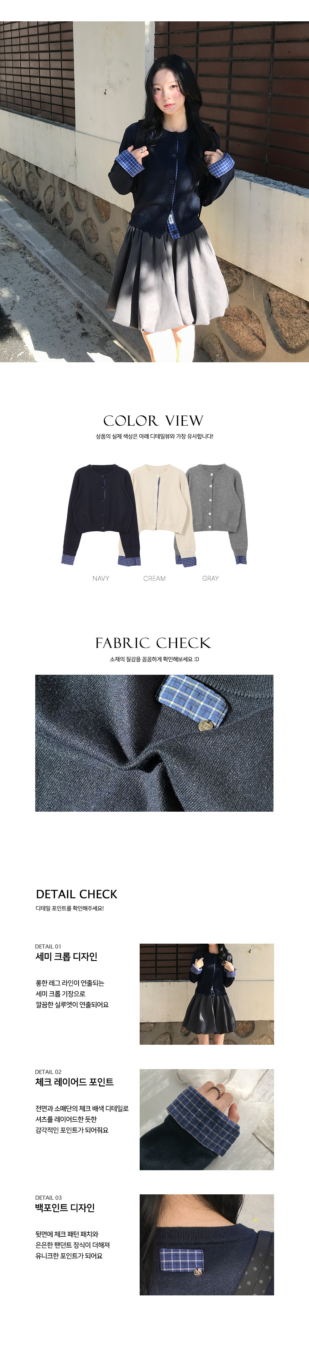 [데일리/빈티지🖤] 체크배색패치니트가디건 (3color)